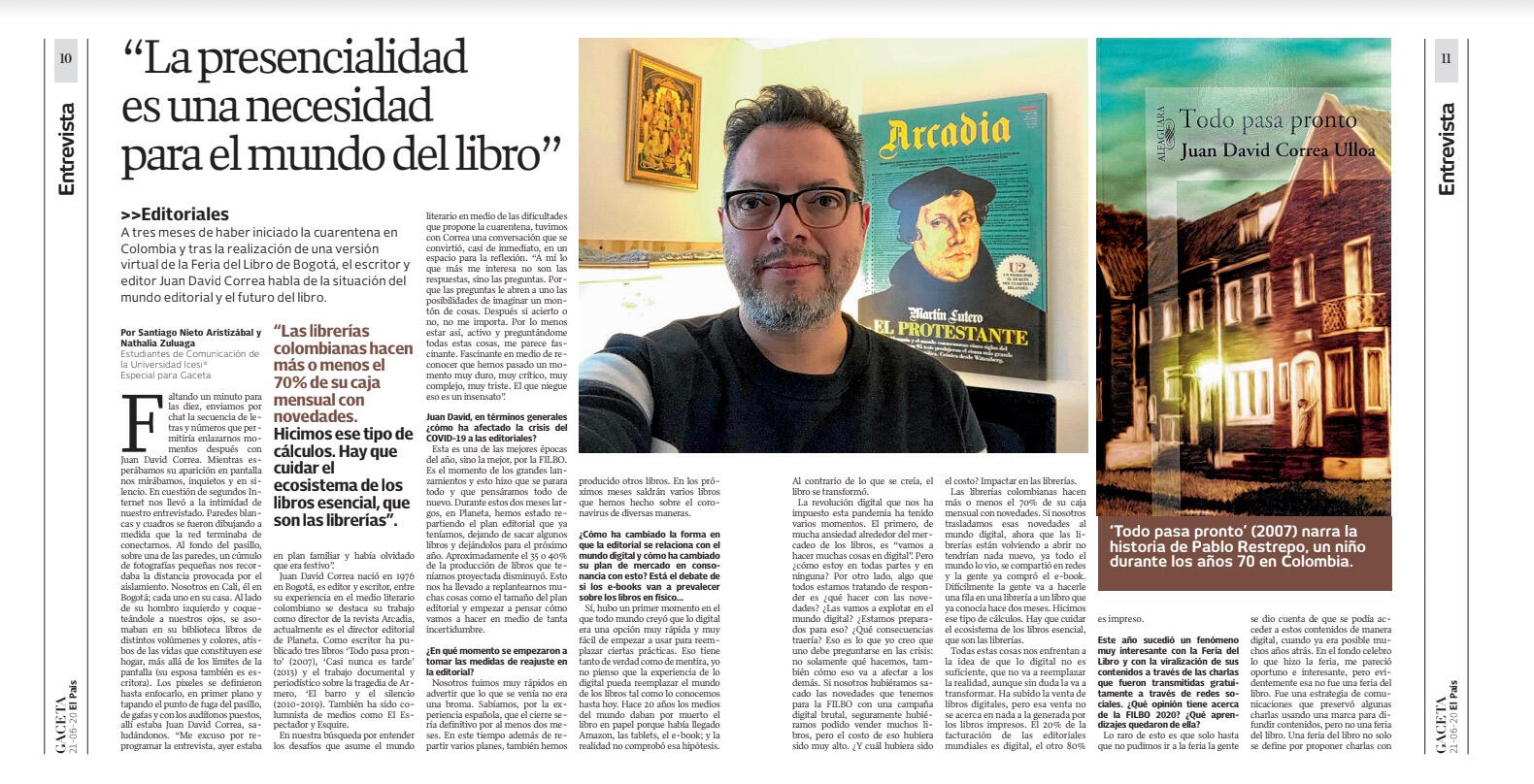 Entrevista | Entrevista a Juan David Correa, escritor, editor y director literario de Planeta; sobre la situación del mundo editorial en medio de la pandemia y el futuro del libro. Leer: Publicada en Gaceta, de El País Cali.