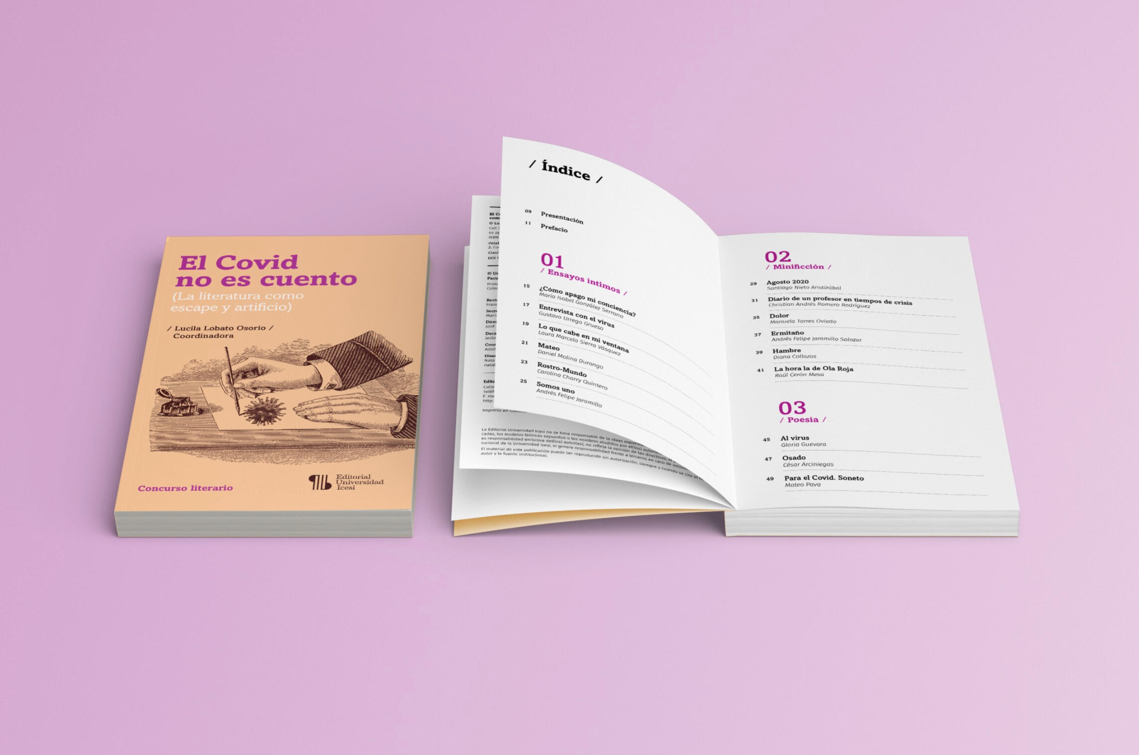 Cuento | Participación en el libro que recopila los textos ganadores del concurso «El Covid no es cuento» en la categoría «minificción», con el relato Agosto 2020. Concurso organizado por el Seminario de Literatura de la Universidad Icesi. Leer: Publicado por la Editorial Universidad Icesi.